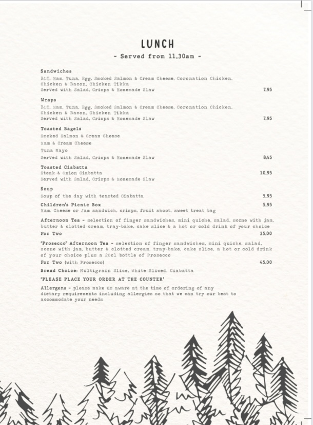 Courtyard Cafe Dalby Forest Menu